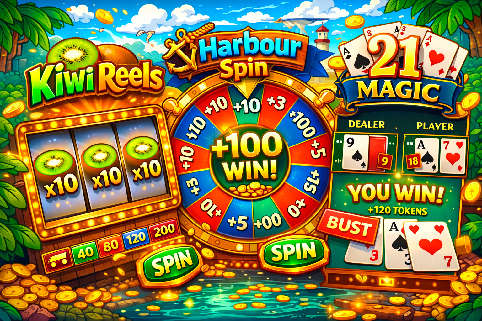 Each game uses a virtual token wallet for progression only. Tokens have no cash value and cannot be withdrawn.